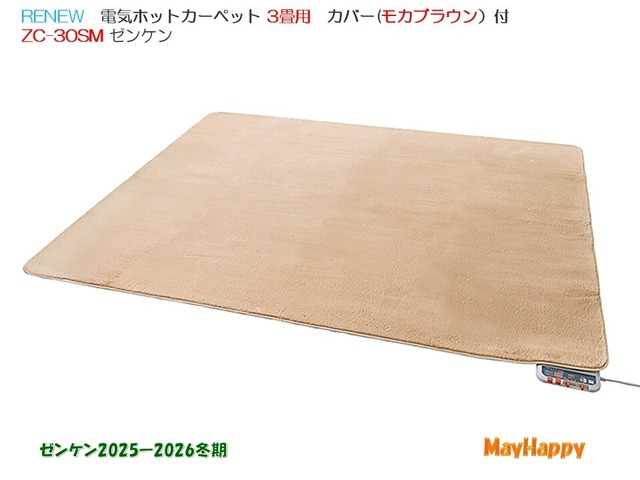◆NEW◆ゼンケン ZC-30SM 電気ホットカーペット 3畳用 カバー(モカブラウン)付