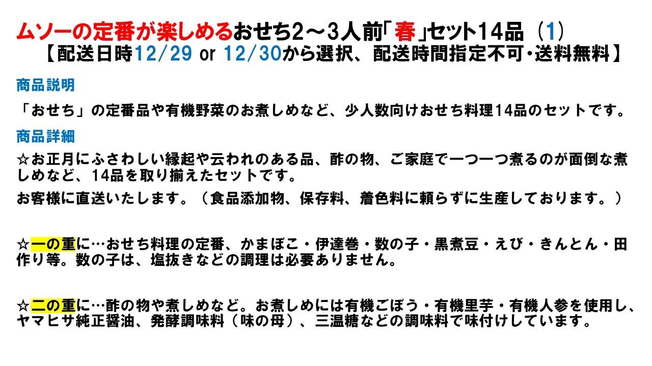 早割おせち『春 はる ムソー 』セット14品(2~3人前)★予約販売25/12/5 14時まで★【12/29 or 12/30日お届け】【冷蔵パック】【全国一律送料無料】